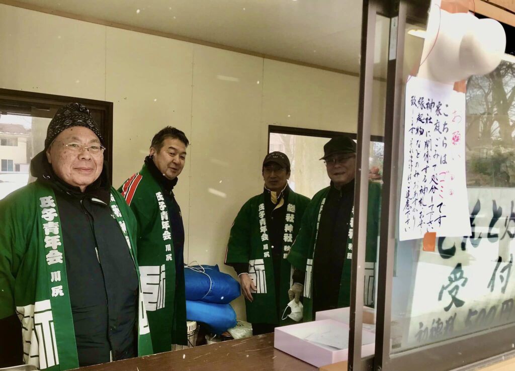 やはりお焚き上げやその火で作る焼きもちを楽しみにしてた方も多かったようでしたが、安全のための判断でした。後日、天候と相談しながら、お焚き上げをする予定です。