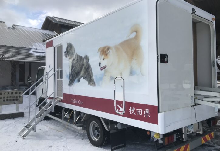 災害時に寄付車の貸し出しを行っている「日本カーシェアリング協会」には、過疎地など公共交通空白地の交通弱者を救う活動として「コミュニティカーシェアリング」の説明をいただきました。また昨年導入された秋田県の災害救護用大型トイレカーを見学しました。